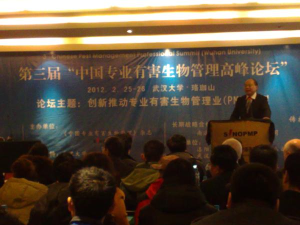 2012年2月25日—26日,第三屆“中國專業(yè)有害生物管理高峰論壇”在武漢舉行,圖為論壇現(xiàn)場
